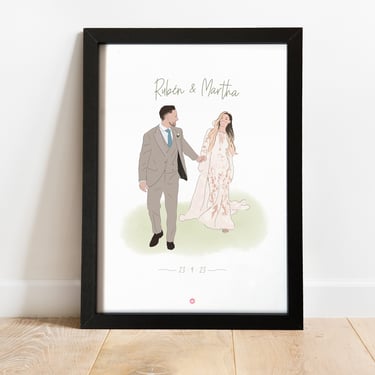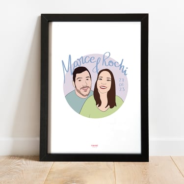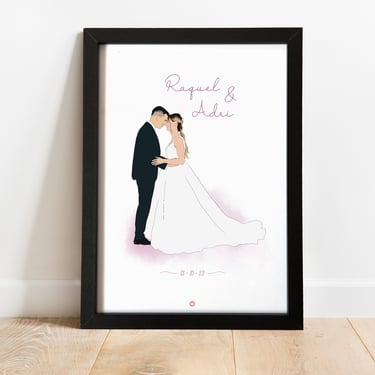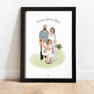 Las láminas personalizadas tipo retrato están ilustradas a mano, digitalmente.