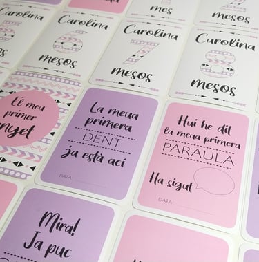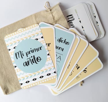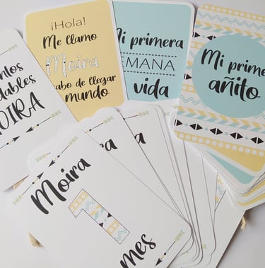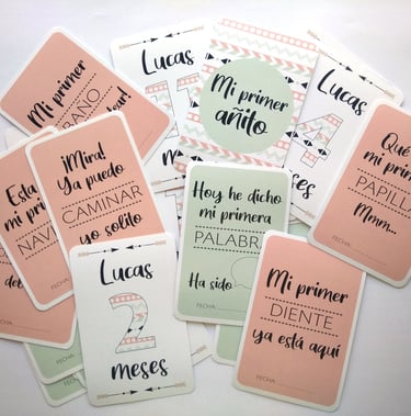 Las tarjetas de hitos mensuales del bebé o ‘baby cards’ son perfectas para inmortalizar los mejores momentos del bebé durante su primer año (o de los bebés, porque también tenemos tarjetas para gemelos). Una manera original de recordar para siempre esas primeras veces.