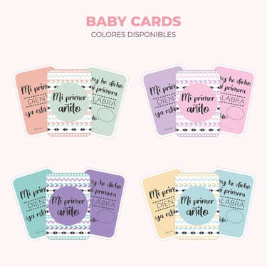 Hay un total de 26 tarjetas (personalizadas con el nombre del bebé), entre las cuales podrás encontrar: